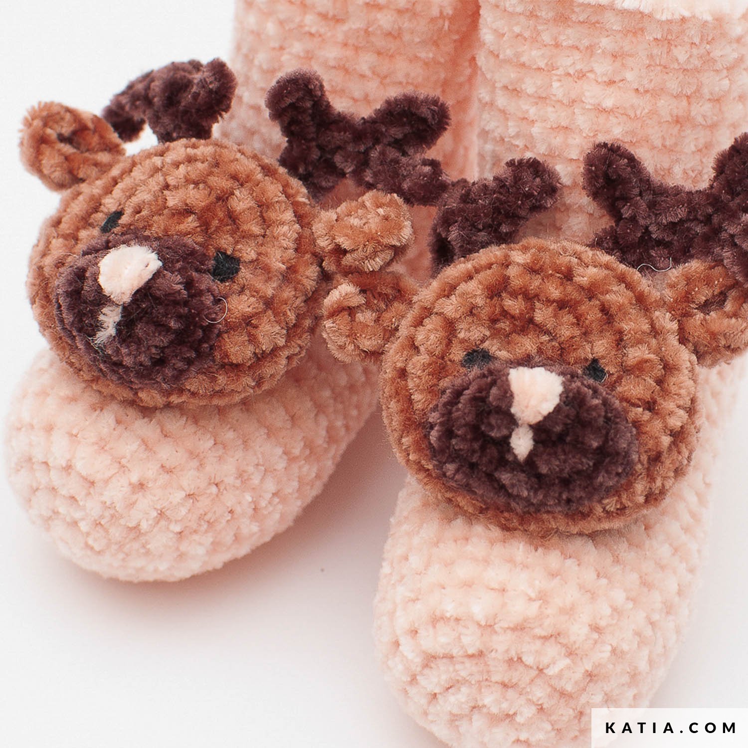 Świętuj Boże Narodzenie z odrobiną czułości dzięki temu uroczemu projektowi autorstwa Gallimelmas: szydełkowe skarpetki z reniferem w formie amigurumi i wyjątkowo miękką fakturą. Wykonaj te zabawne świąteczne buciki z włóczki Katia Sockirumi – puszystej chenilli idealnej do ogrzania najmniejszych stópek.