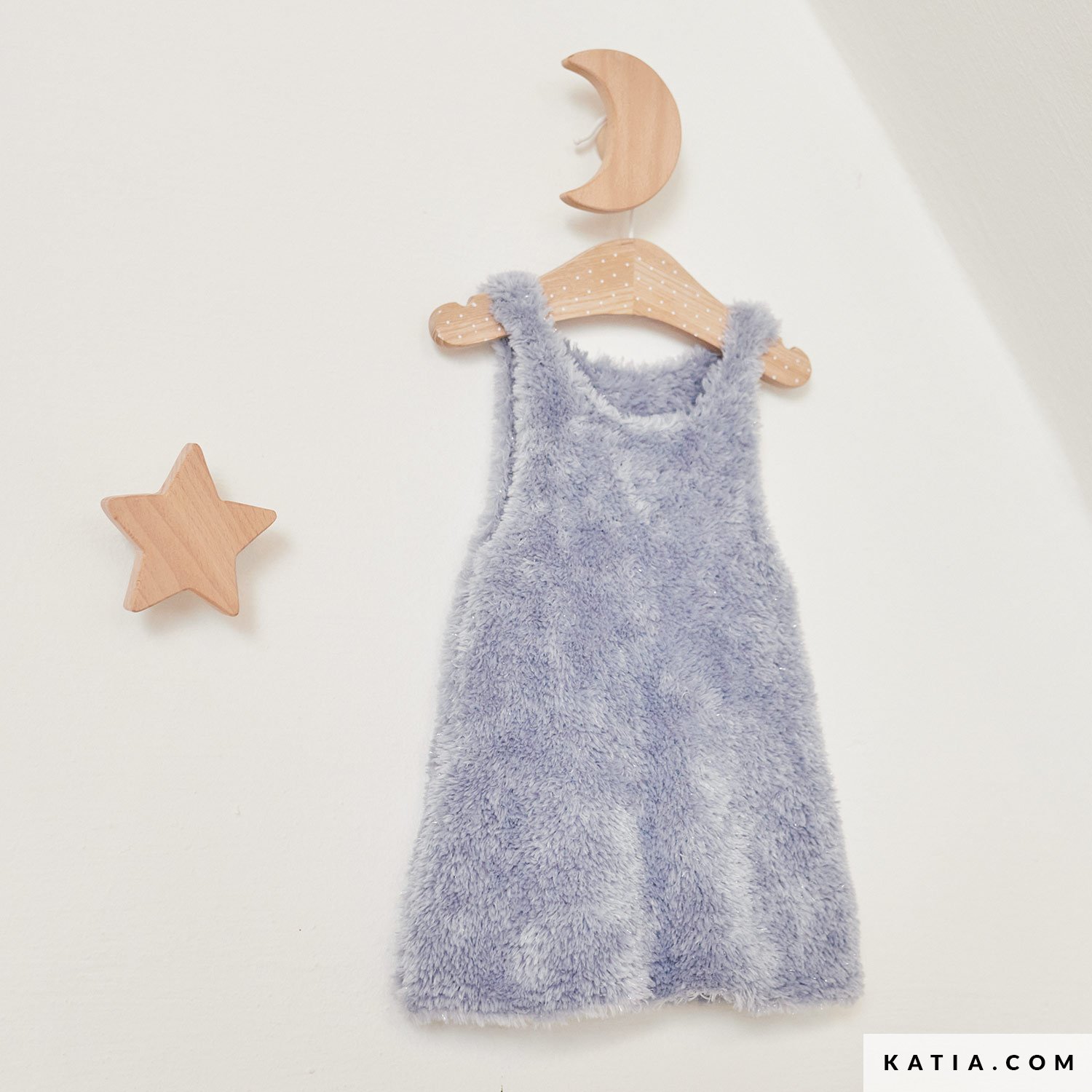 Wykonaj na drutach wymarzoną sukienkę pinafore z tym wzorem PDF, dostępnym również w magazynie Katia Baby 106! Wykonana z miękkiej i błyszczącej włóczki Perline, ta sukienka bez rękawów jest łatwa do wykonania na drutach prostych i jest dostępna w rozmiarach od 3 do 24 miesięcy. Stwórz dla swojego dziecka zabawną sukienkę z efektem futra!