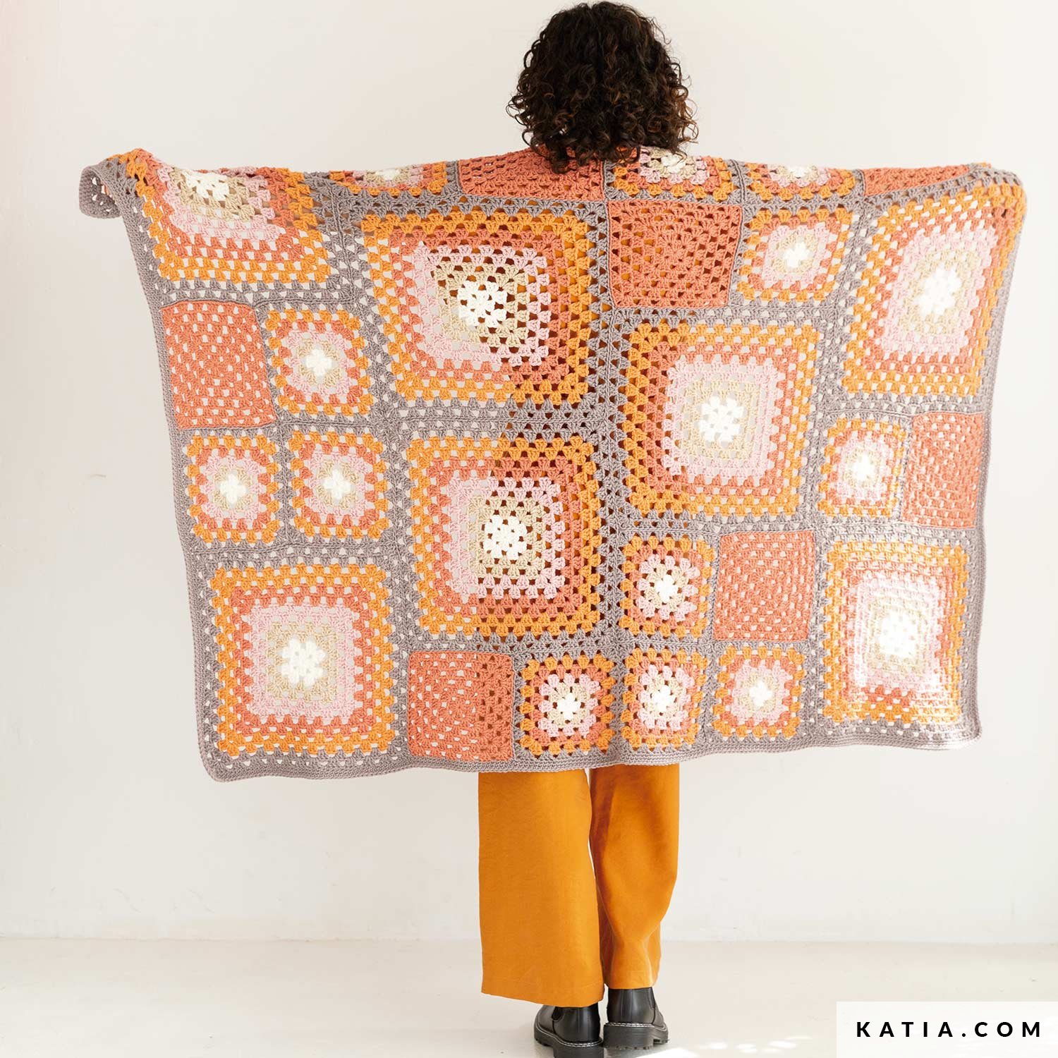 Postępuj zgodnie z tym wzorem, aby wykonać koc z kwadratów w różnych rozmiarach, używając 6 kolorów Merino Aran. Ciesz się ciepłym kocem wykonanym z małych i dużych kwadratów granny połączonych ze sobą.