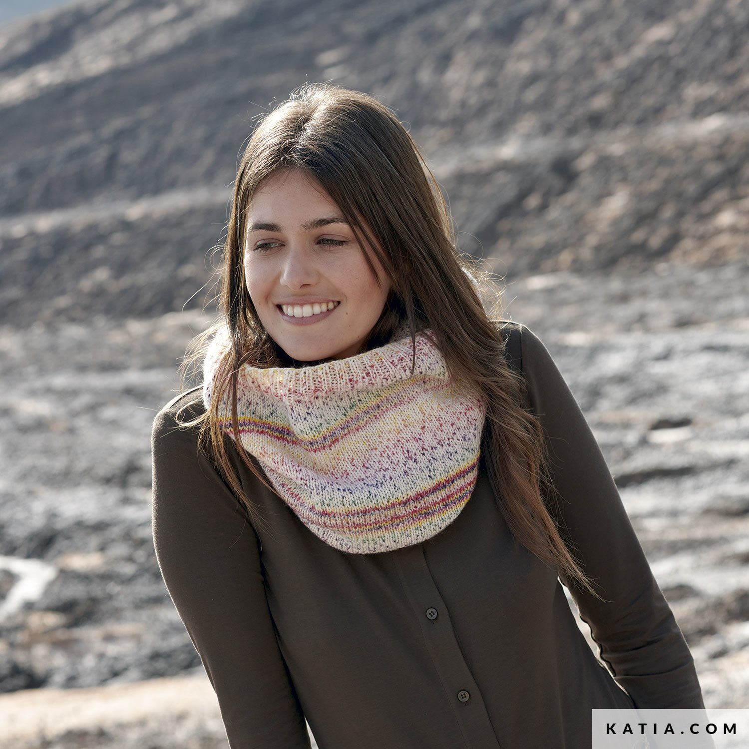 Wykonaj na drutach elegancki podwójny komin z włóczki Symmetric Socks & More Blossom. Ten prosty wzór wykonany ściegiem pończoszniczym ze ściągaczem 2x2 jest bezszwowy. Włóczka tworzy drobne kolorowe paski i plamki na całej powierzchni. Zacznij robić na drutach tę łatwą osłonę i dodaj trochę koloru do swojej zimy!