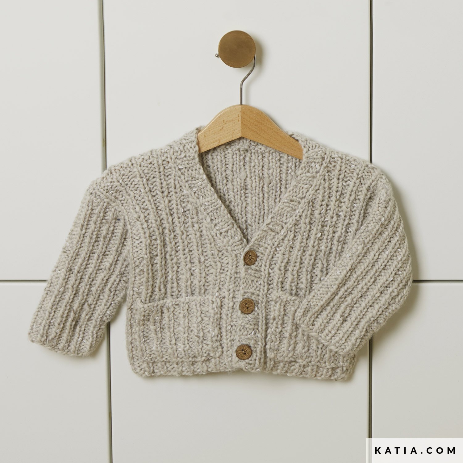 Projekt Irati Ugarteburu @iratirita, zwyciężczyni Katia Designers Awards 6: "Kardigan Ipar, oznaczający "północ" w języku baskijskim, to projekt inspirowany stylem nordyckim". Wykonaj ten wzór, aby zrobić na drutach nowoczesny kardigan dziecięcy z kieszeniami i guzikami, używając włóczki Katia Poesia.