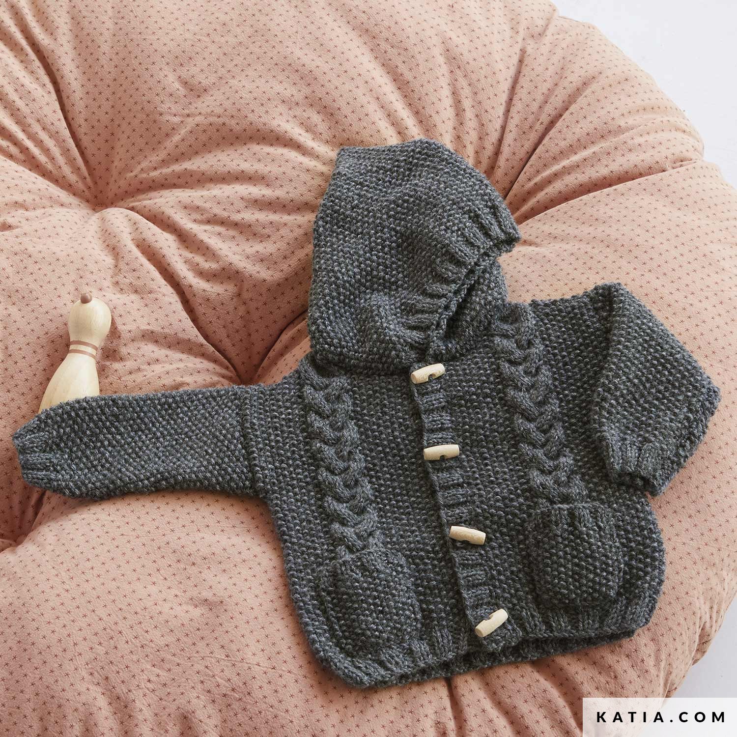 Ciepły i miękki kardigan dla niemowląt wykonany ściegiem mszystym. Przerobić dwa duże druty z przodu i dodać dwie kieszenie. Naucz się łączyć ściegi w uroczym ubranku dla Twojego dziecka. Osiągnij najlepsze rezultaty z włóczką Basic Merino.