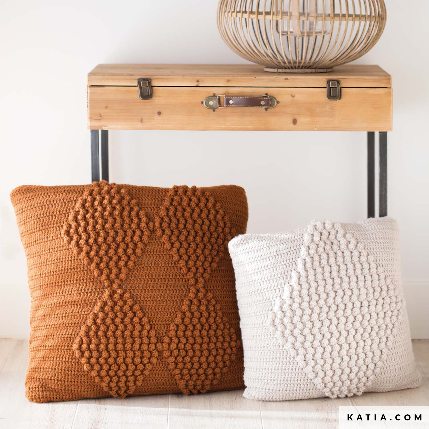 Szydełkuj na przytulną zimę z tym spektakularnym wzorem: ręcznie robioną kwadratową poduszką z teksturowanym motywem rombów, wykonaną z miękkiej wełny Merino Aran. Wspaniały projekt idealny dla początkujących szydełkowiczów i do dekoracji domu w tym sezonie.