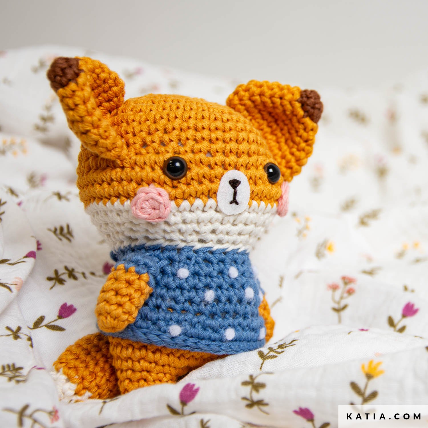 Frances Fox od Sweet Amigurumi Design to mała lisiczka z lasu o czujnym spojrzeniu i w niebieskim sweterku w białe kropki. Należy do kolekcji Forest Friends i została wykonana na szydełku z włóczki Katia Amigurumi, 100 % bawełnianej o podwójnym skręcie, która podkreśla każdy szczegół.