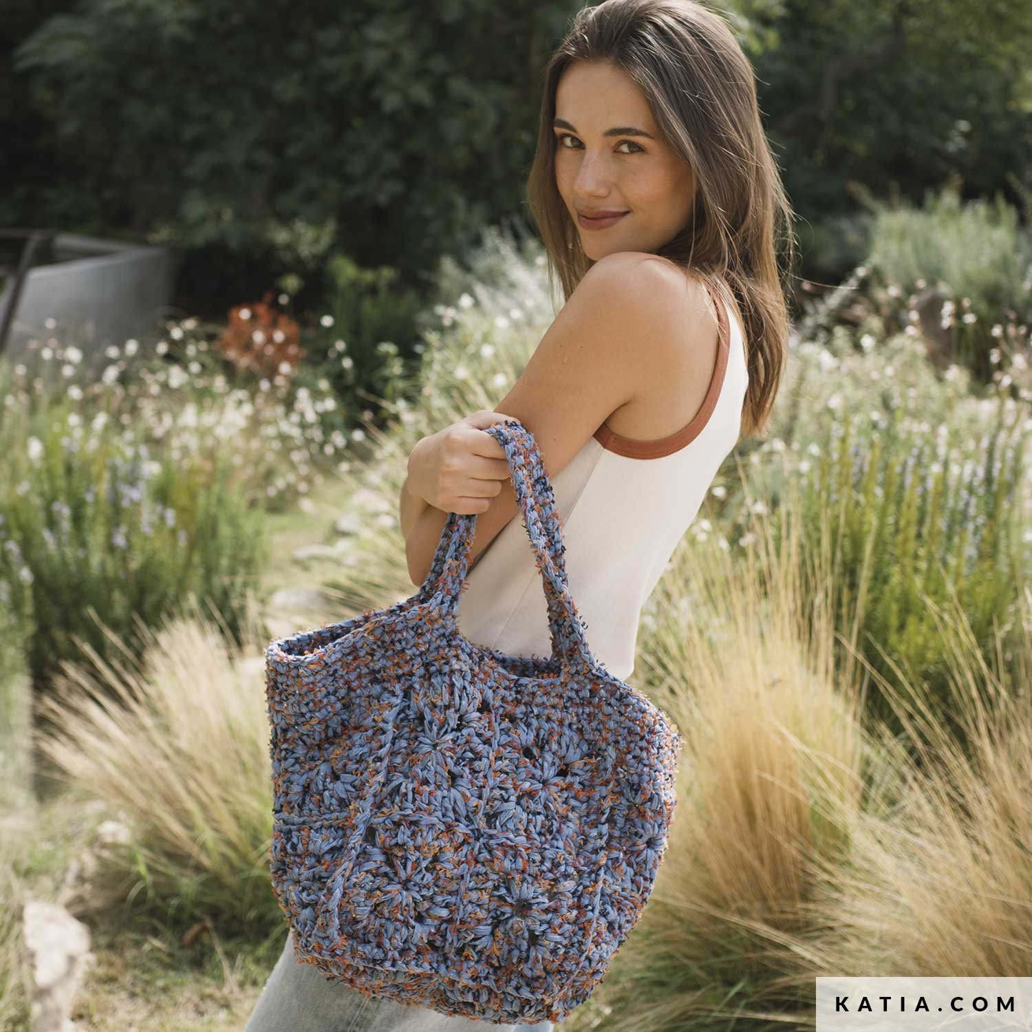 Torba na szydełku o rzemieślniczym charakterze, idealna dla osób lubiących wyraziste faktury. Katia Jarapa to przędza typu taśma, doskonała do projektów o letnim stylu i charakterze. Wzór dostępny na katia.com oraz w Bag to Basics.