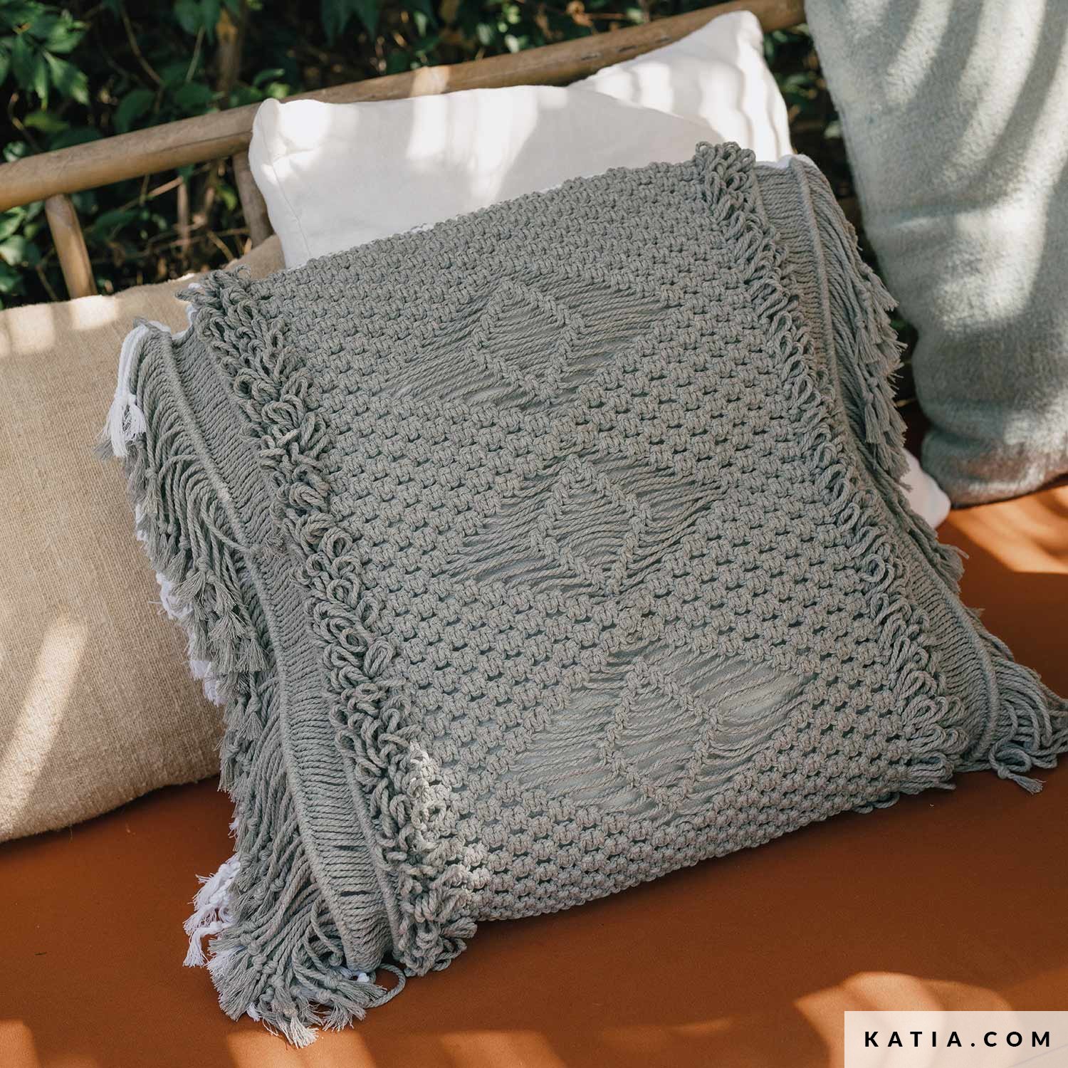 Dzięki cienkiej przędzy Katia Macramé Cord Fine można stworzyć dwukolorową poduszkę przy użyciu techniki makramy. Unikalny i symetryczny wzór, z taką samą kombinacją węzłów po każdej stronie, ale w dwóch różnych kolorach i frędzlami po bokach, doda wyjątkowego charakteru każdej sofie. Nie czekaj dłużej i rozpocznij ten kreatywny projekt!