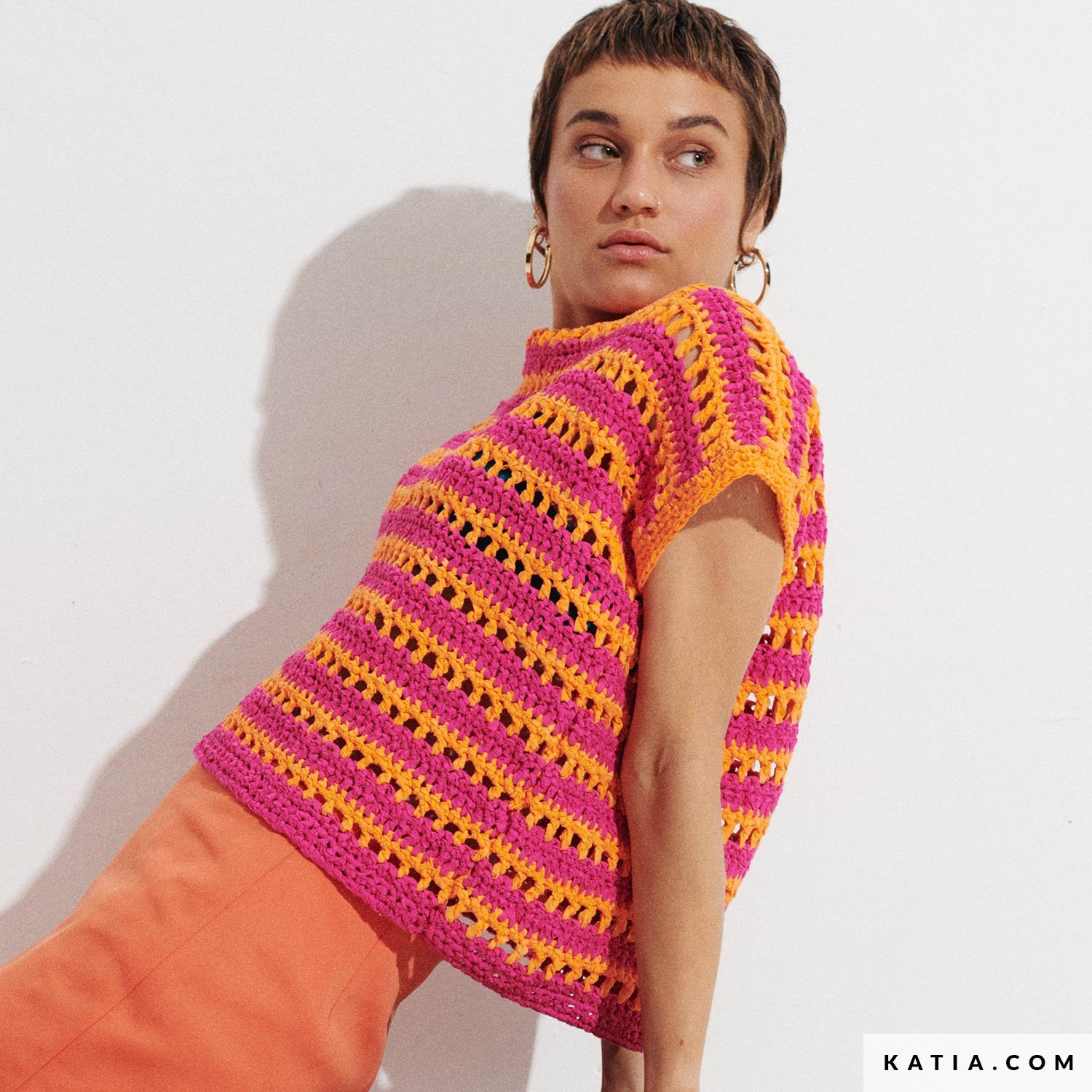 Stwórz łatwy i żywy dwukolorowy top na szydełku z tym darmowym wzorem i WOW Outfit. Jego prosta konstrukcja, z identycznym przodem i tyłem, sprawia, że jest to idealny projekt dla początkujących szydełkarek. Ciesz się szydełkowaniem ręcznie robionej odzieży pełnej kolorów i stylu na całe lato.