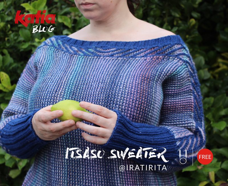 Mit meinem Design für die Katia Designers Awards kannst du einen Pullover von Ärmel zu Ärmel stricken. Dabei kombiniere ich Katia Merino Aran und Katia Azteca. Der Name Itsaso ist Baskisch und bedeutet Meer. Dazu passen sowohl die Farben als auch die Welle in der Brioche-Technik entlang der Ärmel. Vor ein paar Jahren habe ich einen Pulli von @sionaland gestrickt, der ebenfalls quer gearbeitet wurde und diese Struktur hat mich richtig begeistert. Später habe ich an einem Kurz zu Brioche, also Patentmuster, von Nancy Marchant teilgenommen. Ich dachte mir, ein Pullover, der beides verbindet, würde ganz toll aussehen. Et voilà!
