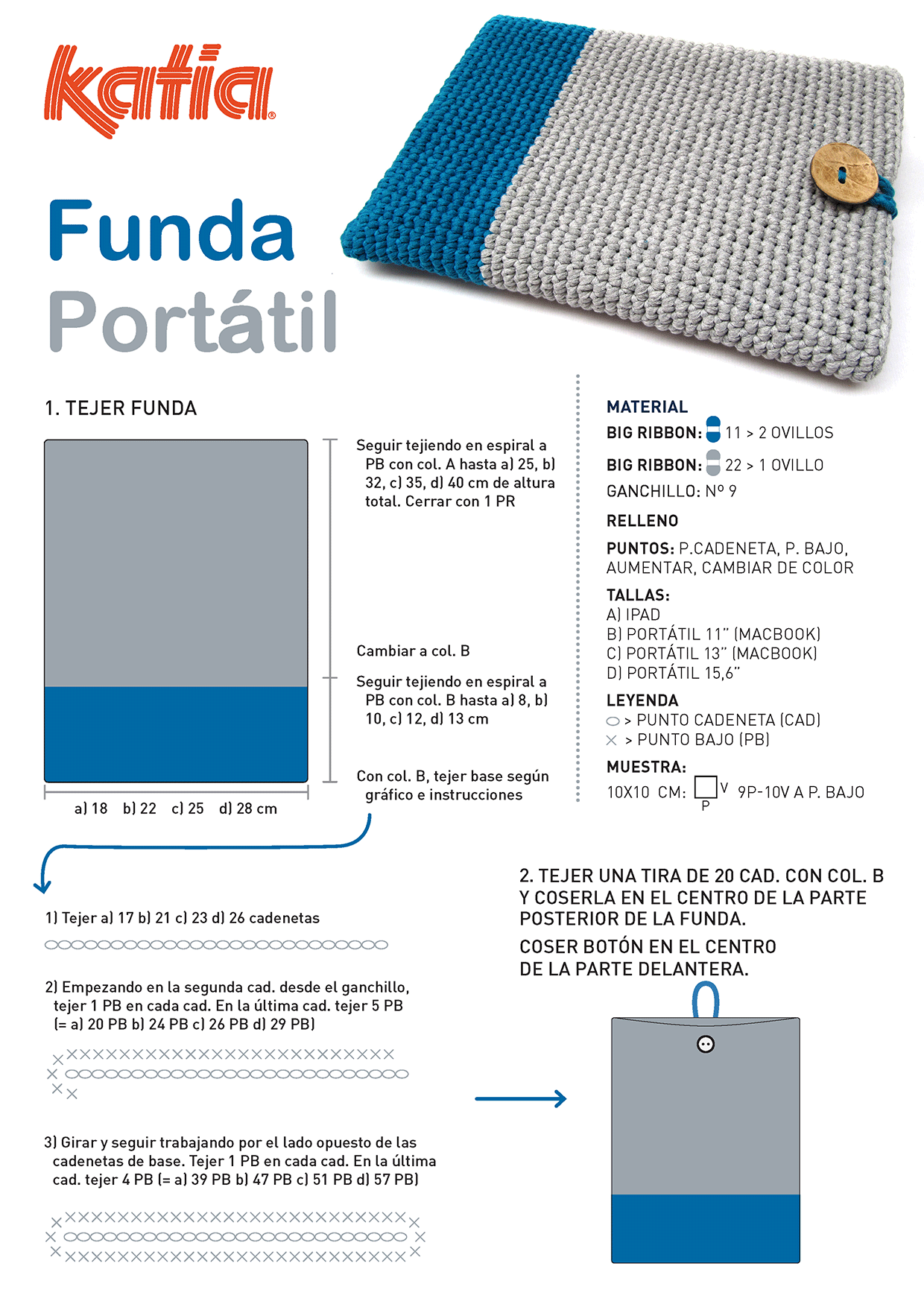 ¿Tienes curiosidad? A partir de febrero encontrarás modelos nuevos realizados con Big Ribbon Plus en nuestras revistas Katia Primavera·Verano 2015, mientras tanto, te proponemos un reto «Plus» para que puedas comparar resultados. Sigue este patrón gratuito para hacer una funda de ganchillo con Big Ribbon, pero dale tu efecto tricolor favorito empleando Big Ribbon Plus.