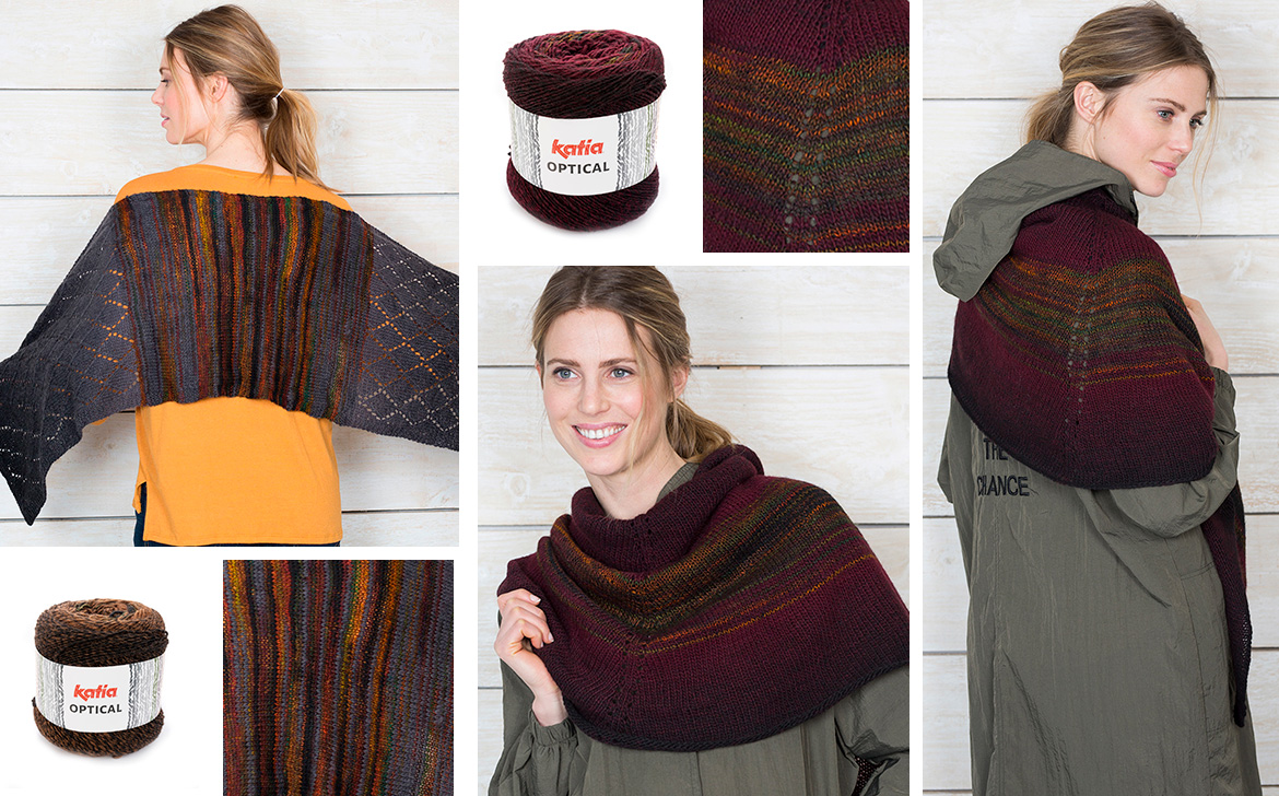 Optical. Scialle, mantella, bandana, sciarpa, stola, foulard.. è necessario un solo gomitolo di Katia Optical per lavorare il tuo accessorio preferito di questo autunno.