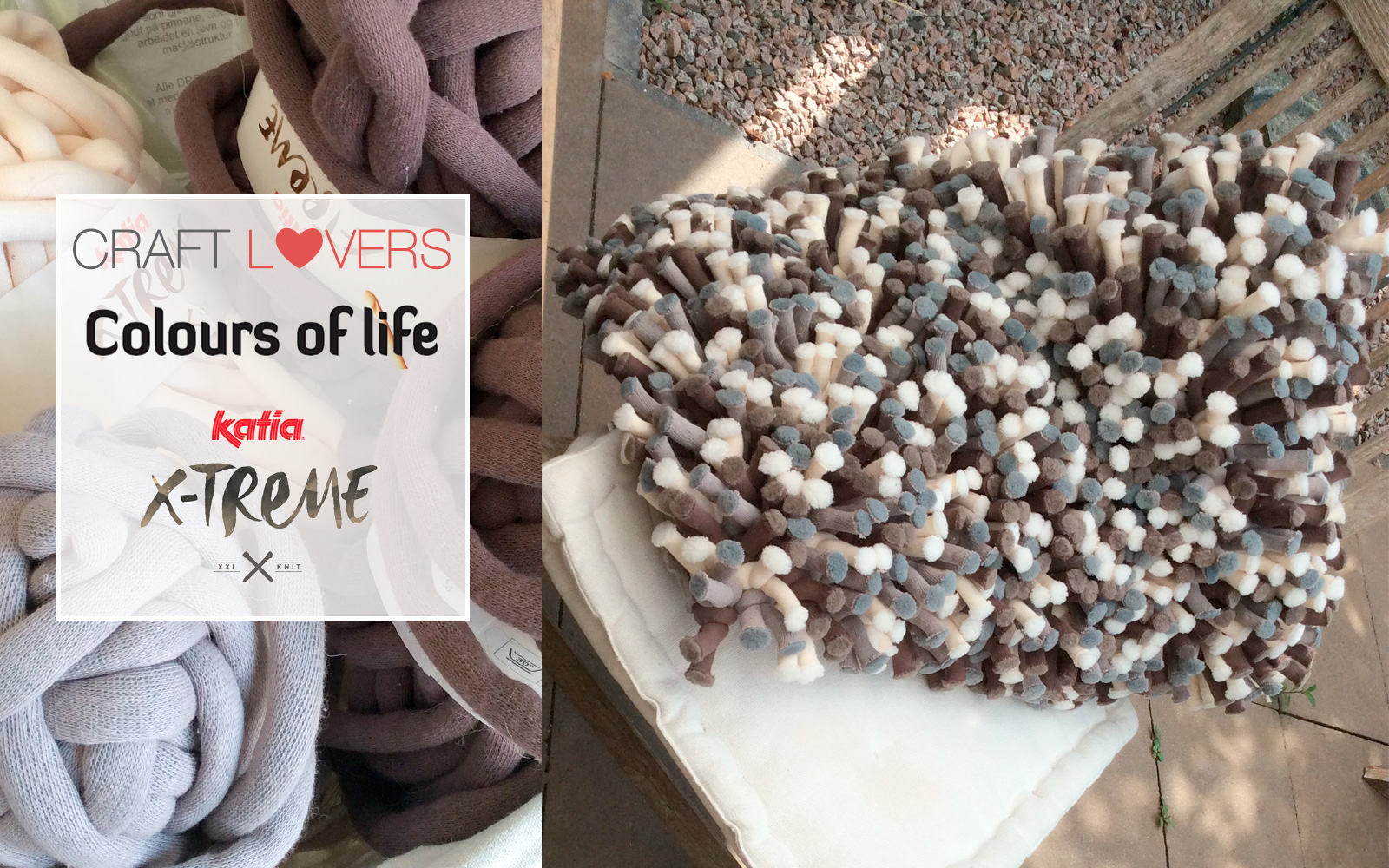 Voor haar is het heel belangrijk om de gebruikte materialen in haar ontwerpen goed te kennen. Daarom, heeft zij voor deze speciale DIY Decoratie Katia X-Treme gekozen. Bereid je voor ! Maak een kussen of een hoes voor een kruk en gebruik hiervoor je handen. Als eerste, volg de handleiding van Colours of Life voor het vervaardigen van dit zachte kussen ´Smyrna´, op basis van eenvoudige knopen. Vervolgens, geef een nieuw image en een vleugje comfort aan een oude kruk. Je hebt slechts enkele bollen garen Katia X-Treme en je vingers nodig ! Volg het patroon van Crochet XL en maak een hoes voor een kruk, gehaakt met je vingers.