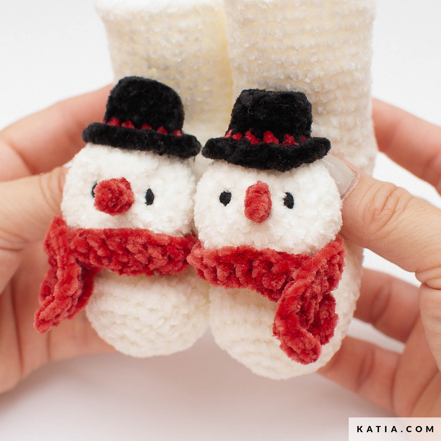 Bring the magic of Christmas to life with these adorable baby snowman booties designed by Gallimelmas. This crochet pattern features an amigurumi-style face, crocheted hat and scarf – the perfect way to keep tiny feet warm with charm and creativity.
