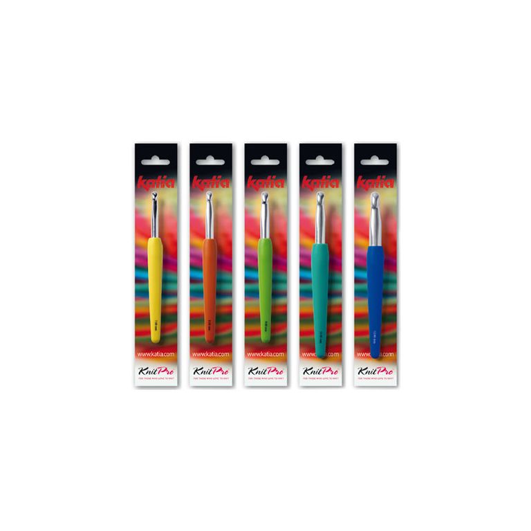 Aluminum crochet hook with light and comfortable ergonomic handle for a smoother crochet experience. The ergonomic handle allows for a better grip and handling of the crochet hook. This is an ideal tool to relax your tension, given that it considerably increases comfort while crocheting. Each hook size is in a different color to make them easy to identify. Collect all the colors and you will be able to tackle any project!