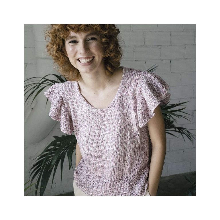 Update your spring-summer wardrobe with this knitted top with ruffle sleeves designed exclusively by @knitting.sheep for Katia’s Kits & Fun Happy Summer. The Amapola Tee Kit includes all the balls of Re-Tape Craft you’ll need, a set of circular knitting needles with two interchangeable cords, a crochet hook, and a tapestry needle. The kit also includes the knitting pattern with instructions to make this top in 4 sizes, and the step-by-step video that you can access through the QR code printed in the pattern.
