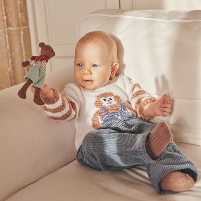 Baby Ultrasoft intarsia monkey baby sweater kit Knit an adorable baby sweater with the Baby Ultrasoft kit from Katia Bebé 106. With its intarsia monkey design and embroidered details, this kit is perfect for creating a uniquely special garment. Use soft and fluffy Baby Ultrasoft yarn from Concept by Katia for an even cozier result. Knit with love for your little one! Find the kit in PDF format or in the Katia Bebé 106 magazine.