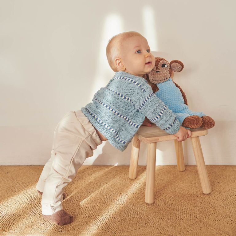 Cotton in Love textured stitch baby sweater pattern This baby sweater pattern is a delight to knit by hand. With textured stitch patterns and a two-toned colorwork line, it’s fun and easy to make. Use Concept by Katia’s Cotton in Love yarn, a blend of the finest Merino wool and Egyptian cotton. The instructions are available in sizes 3 to 24 months. Start knitting this adorable sweater for your baby today!
