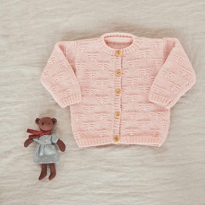 Cotton-Merino Fine textured butterfly cardigan pattern Knit a sweet and charming baby cardigan with our garter stitch butterfly pattern! Using Concept by Katia’s Cotton-Merino Fine yarn, this easy-to-follow design is perfect for knitters of all levels. With instructions for sizes 3 to 24 months, this butterfly cardigan with straight sleeves and 1x1 ribbed finishes is the perfect gift for any baby.