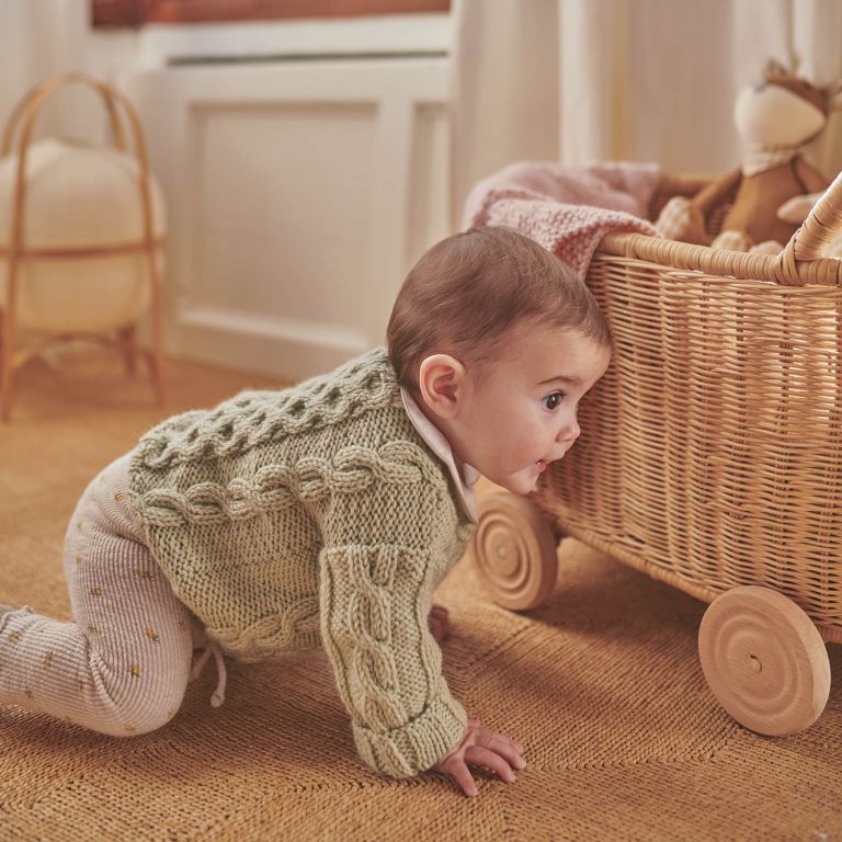 Essential Alpaca Celtic cable baby sweater pattern Knit a Celtic cable stitch baby sweater with our pattern in the Katia Baby 106 magazine or in PDF format! Use Essential Alpaca yarn from Concept by Katia, a blend of superfine alpaca and superwash merino. The design features cables on the body and sleeves, 2x2 ribbing finishes, and a garter stitch neckline. Knit sizes from 3 to 18 months and create a unique and adorable garment for your baby!