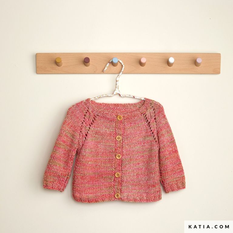 Knit a different cardigan with raglan sleeves decorated with cables framed by delicate lace. A versatile garment for your baby’s wardrobe knit with soft Veganette chain yarn and available for sizes 3 to 24 months.
