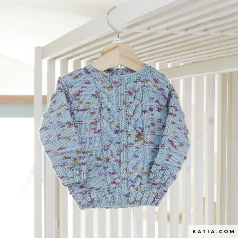 Basic Merino Tweed textured striped cabled sweater pattern Did you know that tweed is on trend for Fall-Winter 22/23? This is why we suggest knitting a baby sweater, with cables and textured stripes, and the speckled color pattern of Basic Merino Tweed. Choose your favorite colorway!