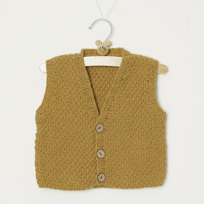 Cotton in Love knit baby vest pattern Double moss stitch is the star of this knit baby vest pattern. Choose a color of Cotton in Love and fall in love with the staple of the season, but in miniature, for sizes 3 to 24 months.