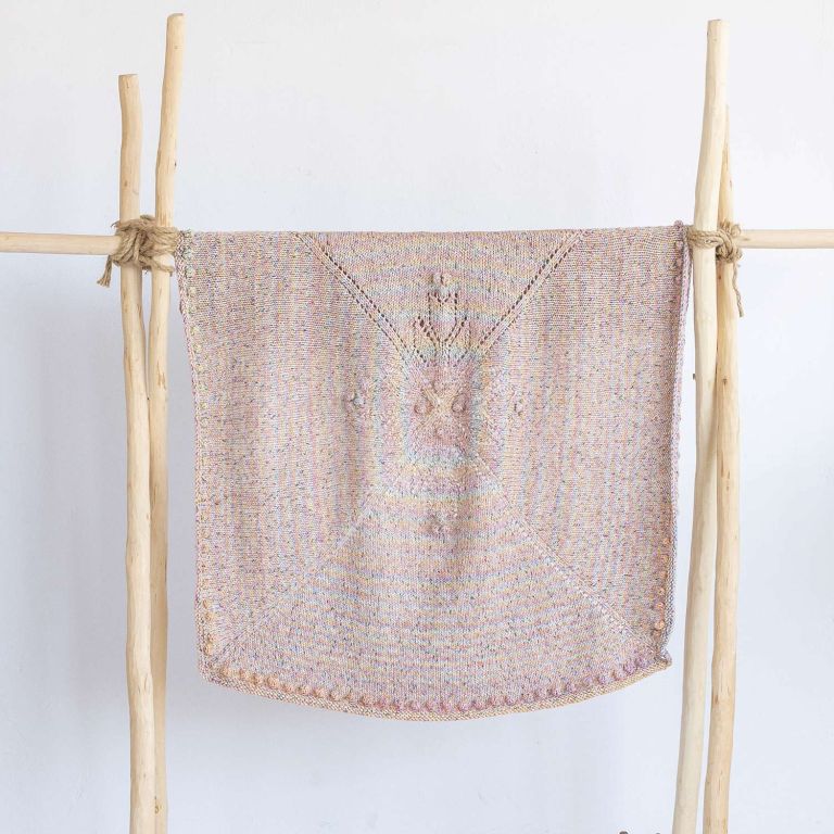 Free circular baby blanket pattern with 1 ball of Rocket Are you looking for a gift idea for a newborn? Follow this free pattern to knit a baby blanket with circular needles and just 1 megaball of Katia Rocket. Learn how to knit a square blanket with circular knitting needles, from the center with pretty lace to the border adorned with bobbles.