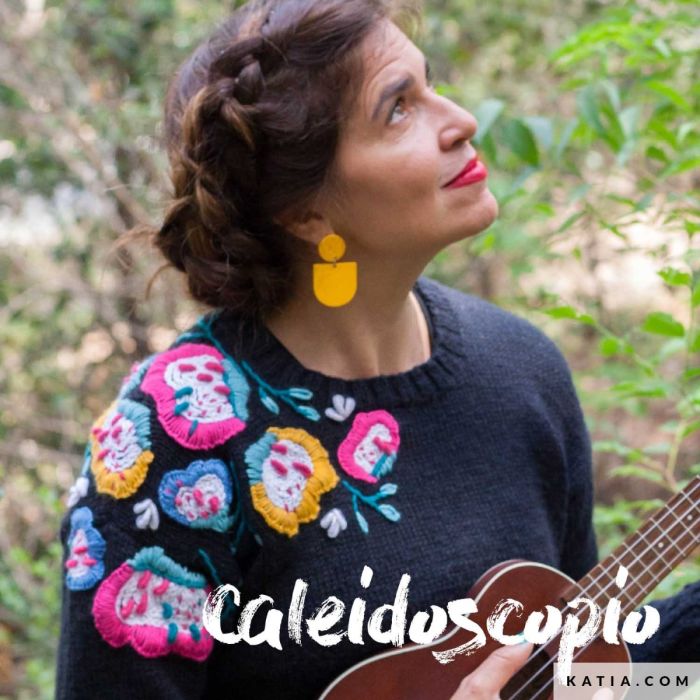 Make something basic extraordinary with the Caleidoscopio Sweater. A true gem knit with merino yarn, decorated with embroidered flowers that add a unique personal touch.For this, I suggest using a template. This will give you the freedom to reproduce the floral design wherever you like and let your creativity go wild.
