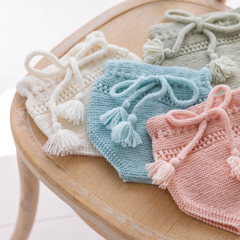 This newborn-sized romper pattern is perfect for making a simple and sweet garment. Knitted in garter stitch with Concept Merino Baby or Katia Peques, it features a delicate eyelet pattern on the top and an i-cord drawstring to adjust the waist. Knit a different romper for every day of the week.