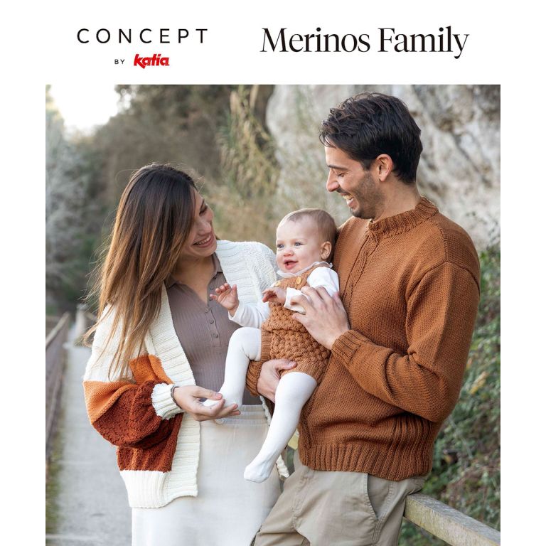 Katia Merinos Family Magazine is perfect for those who love hand knitting and are looking for inspiration and quality in their projects. Make the most of the Merino 100% wool line from Concept by Katia with the patterns in this magazine for women, men, and babies, made with three amazing yarns such as Merino Baby, Merino 100%, and Merino Sport. Enjoy three worlds of classic colors for the entire family: from anthracite with beige and camel, to toasted tones with orange and raw in contrast, to greens and blues. Make the Merino wool shine in all its glory with interesting textured stitches and dreamy motifs!