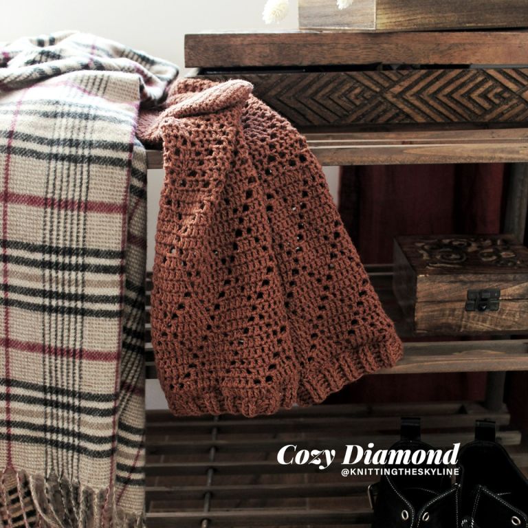 Cozy Diamond are simple knee-high crochet socks, perfect to keep you —stylishly— warm at home during the cooler months.