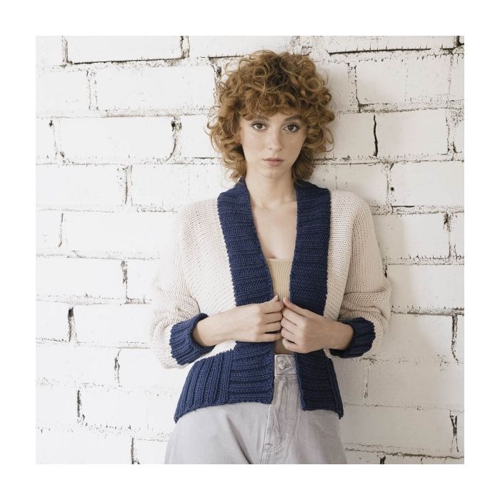 We suggest a selection of knitting and crochet designs that are perfect for starting your sustainable fashion wardrobe. Do you fancy knitting an elegant, seaside-inspired cardigan? You just need the Dorotea Cardigan knit with balls of Easy Knit Cotton in two colors.