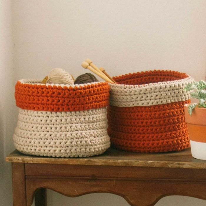 Learn how to make easy baskets using Big Ribbon with this crochet pattern for beginners! Enjoy the process of making this practical and fun storage using lightweight Katia Big Ribbon yarn available in a wide range of vibrant colors.