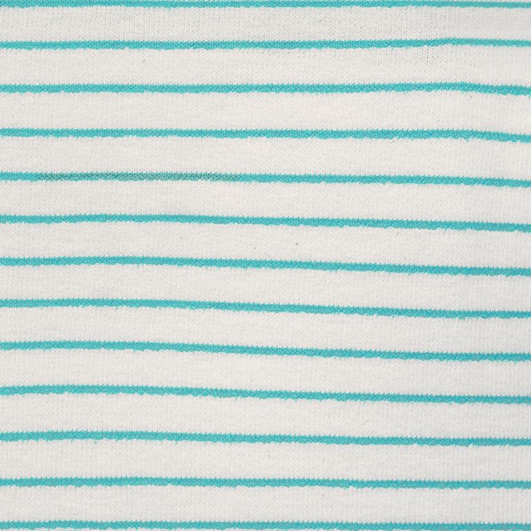 Light summer fabric with a towelling effect. Cotton rich in cream with a discreet fluorescent blue horizontal stripe to add an updated sporty look.