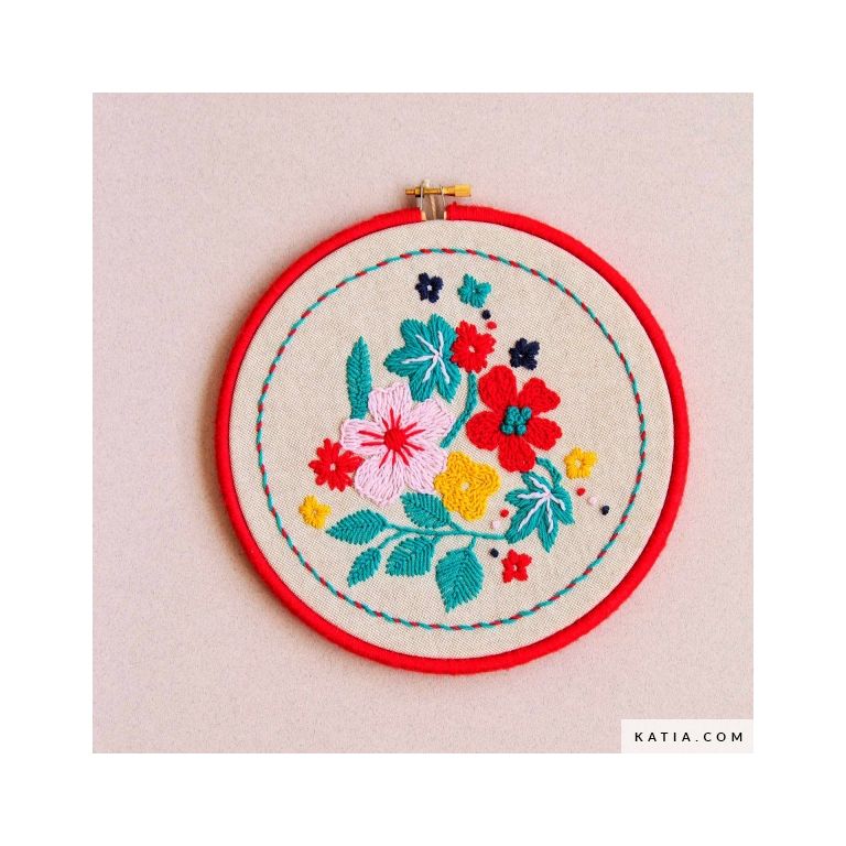 Find out how to embroider flowers by hand with the Feel the Spring Embroidery Kit designed by @srtalylo, an expert embroiderer, exclusively for Katia. In this recycled paper case, you’ll find a wooden embroidery hoop measuring 20 cm in diameter, an embroidery needles set, a needle threader, a 25-cm wooden baton, 5 balls of Katia United Socks in assorted colors and two pieces of Recycled Canvas Stone fabric (measuring 21x30 cm and 30x30 cm). You’ll also find a printed leaflet with the embroidery patterns for both floral arrangements and access to videos to learn how to embroider each stitch. Our embroidery kits include everything you need to enjoy drawing with needle and thread!