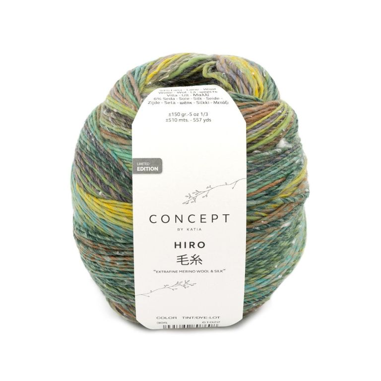 Hiro by Concept by Katia brings the charm of handcrafted things into your life! This unique yarn is the perfect blend of extrafine merino and silk, offering a soft feel and a rich color range. It alternates colors to create wonderful effects in your knitting projects. Forget about ordinary yarn and enjoy the indescribable softness of Hiro by Concept by Katia. This is a unique experience you don’t want to miss out on.
