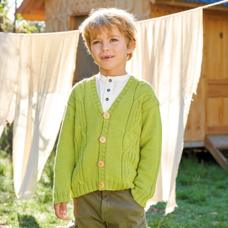 Cotton-Cashmere classic children’s cardigan knitting pattern This classic straight children’s cardigan is perfect for special looks. Follow a simple knitting pattern and enjoy Cotton-Cashmere, a soft and warm yarn. This cardigan features two large cables on the fronts, and can be knit in your favorite on-trend color.