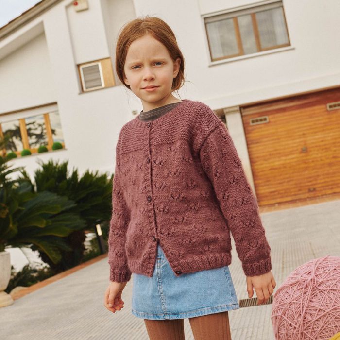 Soft Gratté garter yoke lace cardigan kit Try knitting a cardigan for your little one from sizes 2 to 10 years of age with this garter yoke kit with vintage lace. The 2x2 rib finishes give it an elegant touch, while the 5-button closure keeps them warm in style.