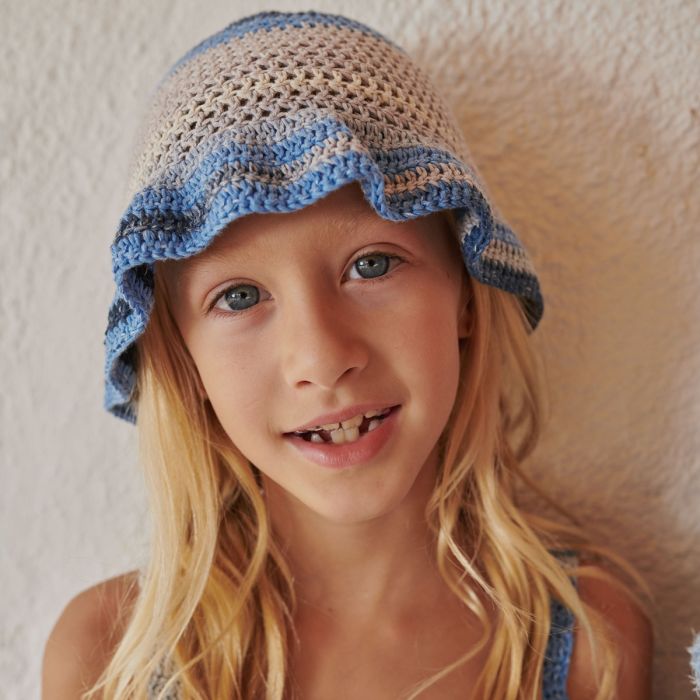 Discover the perfect summer crochet pattern in the Kids 109 magazine! We suggest a summer hat that starts with a round granny square, ideal for stylishly protecting your little one from the sun. Using the cool and lightweight Katia Fair Cotton Granny yarn, this design will allow you to make a unique and colorful accessory for your child. Don’t wait any longer and start crocheting this easy pattern today!