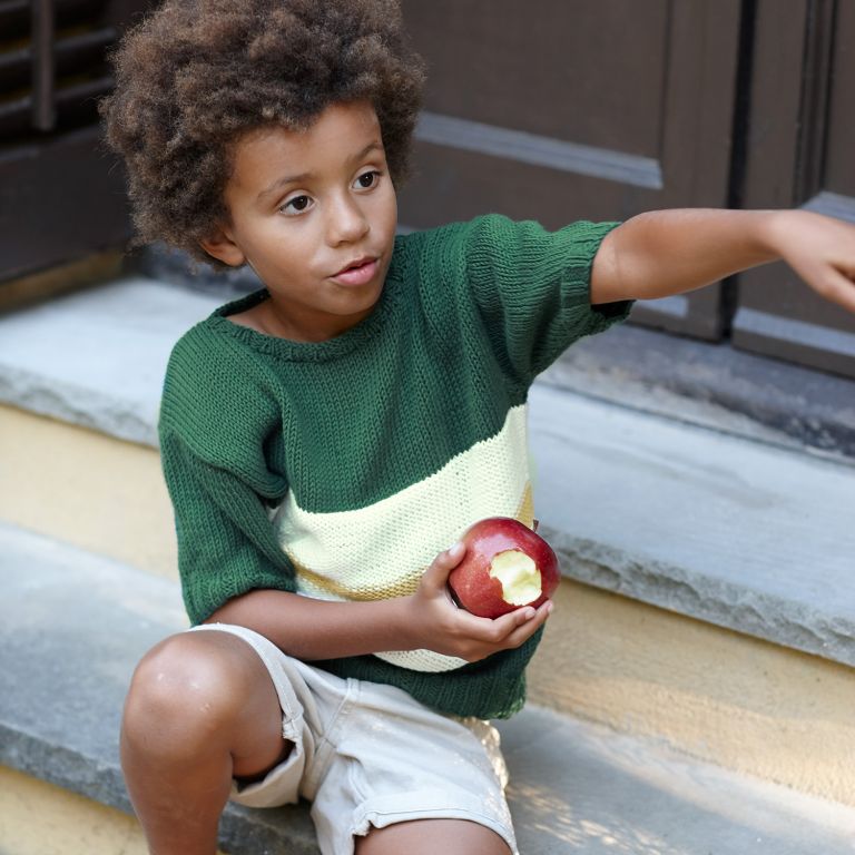 Easy to knit kid's jumper in two colours with 3/4 sleeves.