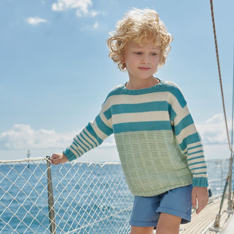 Play with coloured stripes and stitches in this easy pattern made with Seacell Cotton, a 100% biodegradable yarn. Combine stripes in different widths on a sailor inspired sweater perfect for Summer.