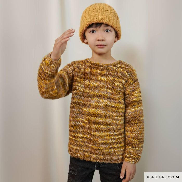 Achieve this unique Savana Mouliné pattern and knit a fun children’s jumper with a cabled yoke design. Complete the look with a modern fisherman’s hat, perfect in mustard. Ideal for intermediate knitters.