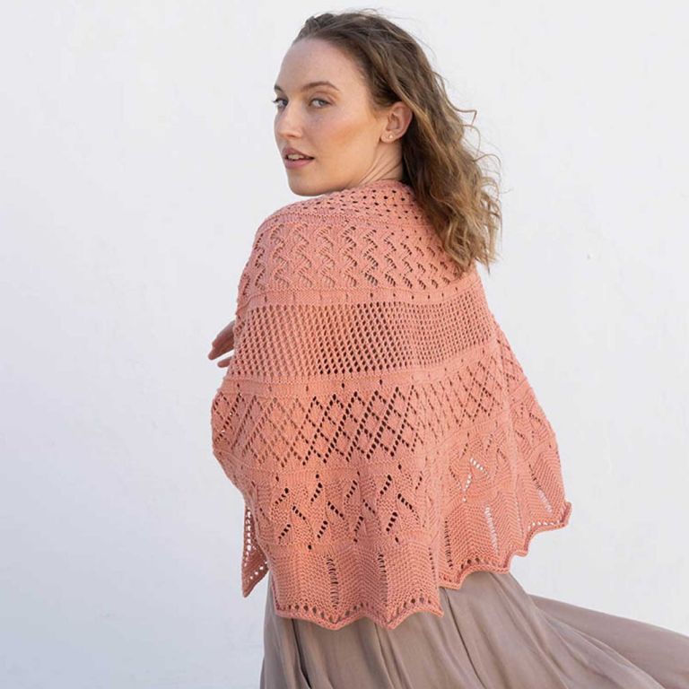 Wrap your senses in this exquisitely designed shawl combining lace motifs and geometric textures. Get ready to elevate your creative soul with the L’Anima shawl design!To participate, all you need is the 2025 L’ANIMA SHAWL KAL KIT, which includes 8 balls of Cotton-Cashmere Concept by Katia in your favorite color.
