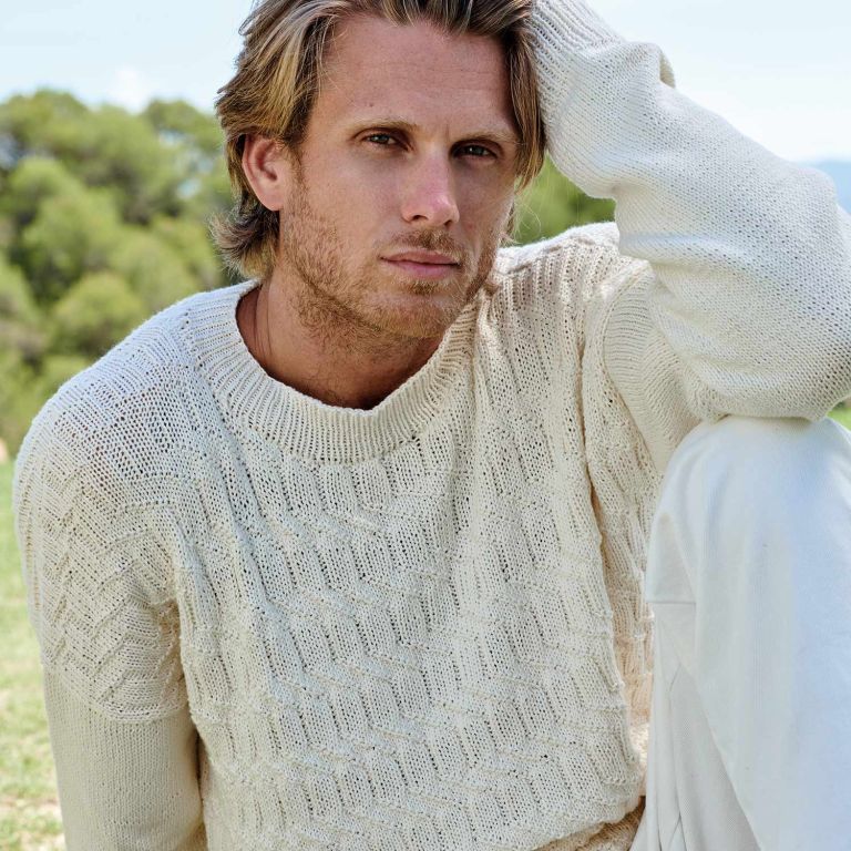Cotton-Cashmere round neck men’s sweater knitting pattern This round neck men’s sweater is knit with Cotton-Cashmere, a soft and warm yarn by Concept by Katia. The textured stitch pattern on the body and stockinette stitch sleeves give it an elegant vibe, while the timeless color makes it perfect for any look.