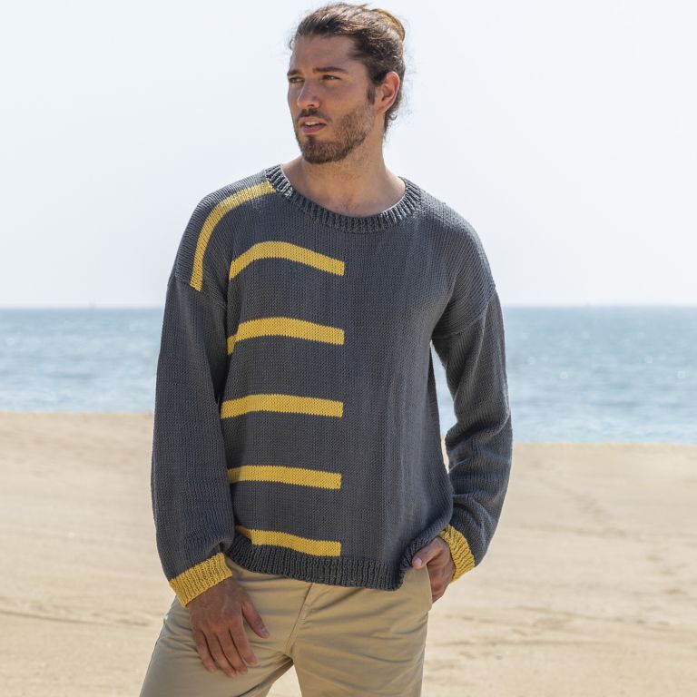 Mens Sweater Knitting Pattern - S/S - Easy - (6165-21)