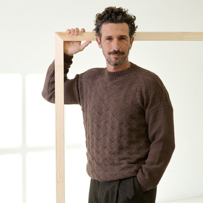 An ideal option for those who appreciate every detail. The crew neckline and classic finishing touches make this fantasy stitch sweater with a criss-cross effect a timeless piece. Knit with Concept Merino 100%, a soft and warm wool, this pattern is available at katia.com and in the Concept 18 magazine. Turn this pattern into a memorable creative experience.