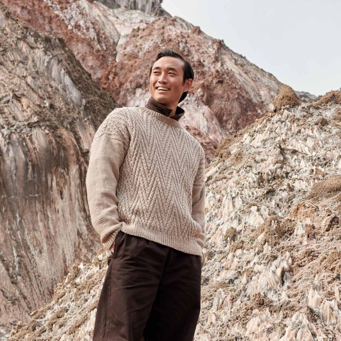 This men’s zigzag stitch sweater pattern, knitted with 100% Merino, features straight lines and a round neck. It is a basic and timeless garment. Superwash wool makes daily care easy, and its wide range of colors makes this sweater ideal for pairing with your favorite jeans. Start knitting the new must-have for all your looks today!