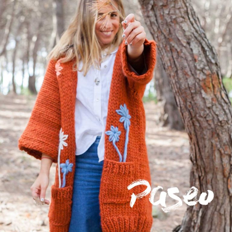 Start your creative embroidery adventure with the Paseo Coat, a long and open garment with bunches of embroidered daisies. This basic design comes to the fore thanks to the weight of the Katia Love Wool yarn, which makes the floral embroidery stand out spectacularly.