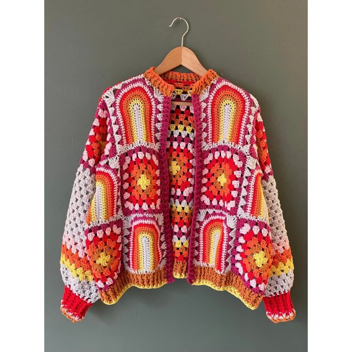 This rainbow cardigan is bright, comfy and versatile. You can wear this cardigan casual with jeans or more dressed up with a dress or a skirt. The pattern is designed in a way that also the less experienced crocheter will be able to enjoy this pattern. The pattern can be made step by step and can easily be adjusted to size. The rainbow in this design stands for fun, tolerance and happiness. I love using rainbows or bright colours in all the things I design.