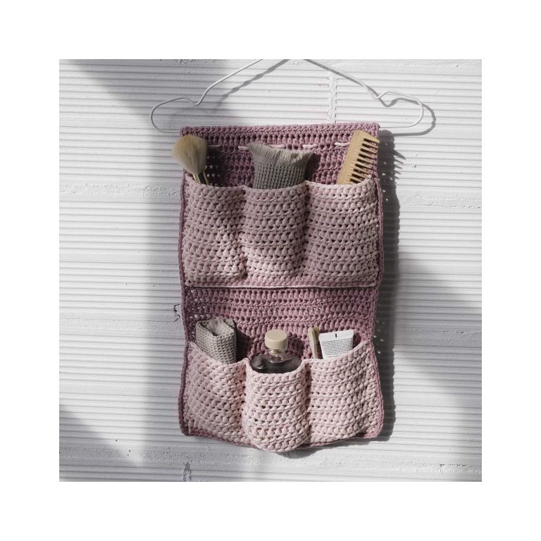 If you’re looking for a practical and decorative summer project, we recommend the homeware ideas included in the Kits & Fun Happy Summer designed by @bykaterinadesigns. If your home needs organizing, we recommend the Saturnia Kit to learn how to crochet a hanger organizer. This kit consists of balls of Homemade, a crochet hook, a tapestry needle, as well as the printed leaflet with the easy pattern and a QR code to access a full video tutorial. Always keep your accessories and personal hygiene products handy with this simple hanger with pockets, ideal for small bathrooms.