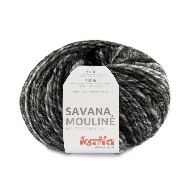 Savana Mouliné is a soft and plump wool. It is a fun singles yarn with a short, patterned cycle. Knit colourful jumpers, cardigans, or the coolest winter accessories. You can definitely combine the tones of Savana Mouliné with the gradients of Savana Degradé to achieve an even more surprising colour effect.